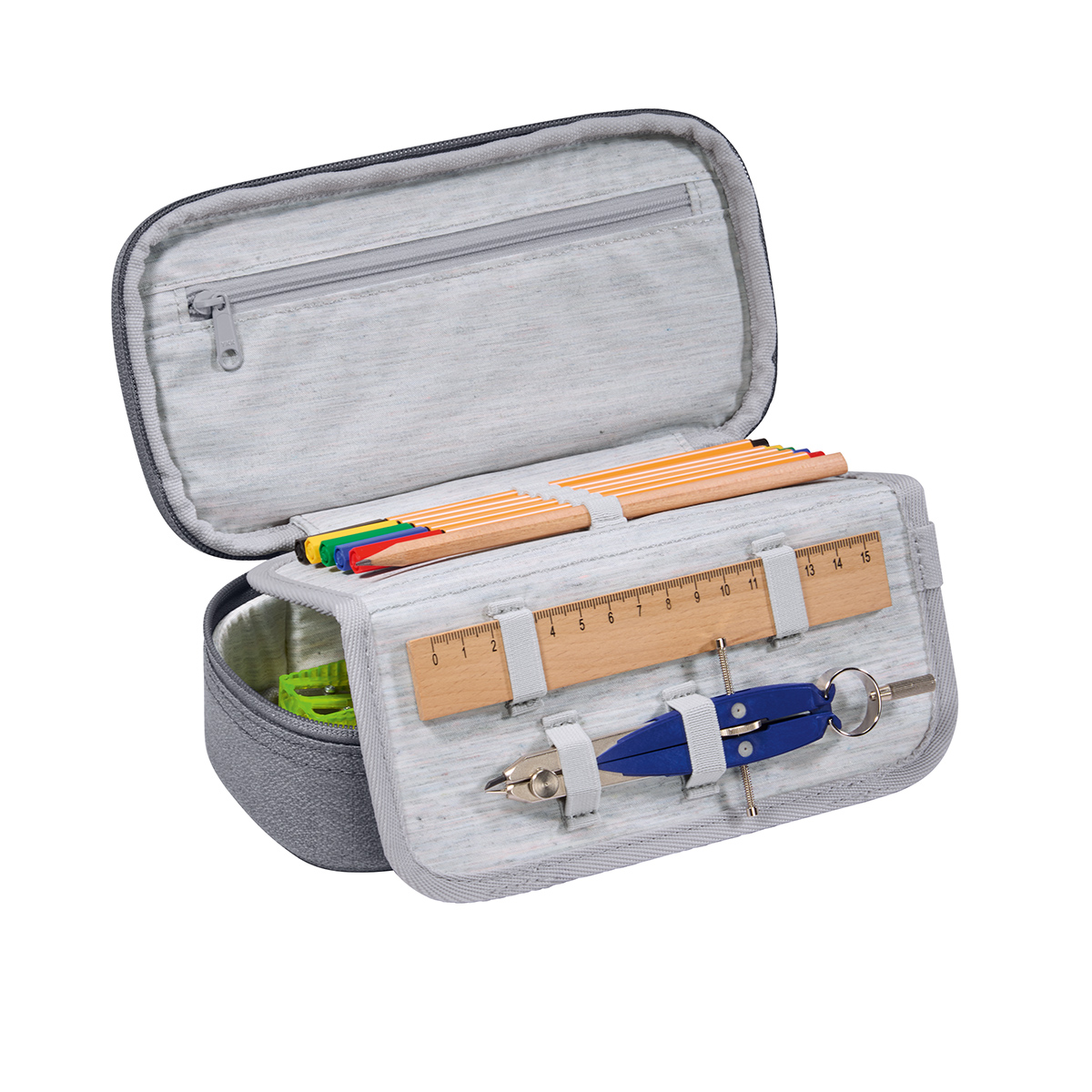 Geräumiges Hauptfach: Bietet ausreichend Platz für Stifte, Marker, Lineale und weitere Schulutensilien.