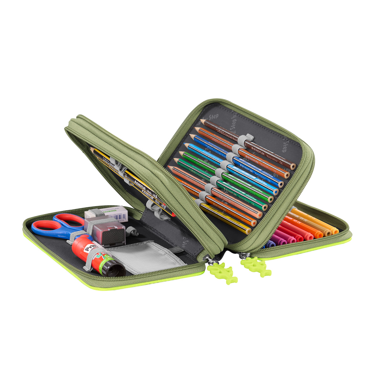 Das XXL Mäppchen von Step by Step bietet ausreichend Raum für Stifte, Zubehör und kleine Schulutensilien – ideal für Kinder, die großformatige Mäppchen bevorzugen. Mit strukturierter Innenaufteilung, stabilem Reißverschluss und robustem Material ist es bestens für Schule und Freizeit geeignet. Dank dem durchdachten Konzept bleibt alles übersichtlich und griffbereit.